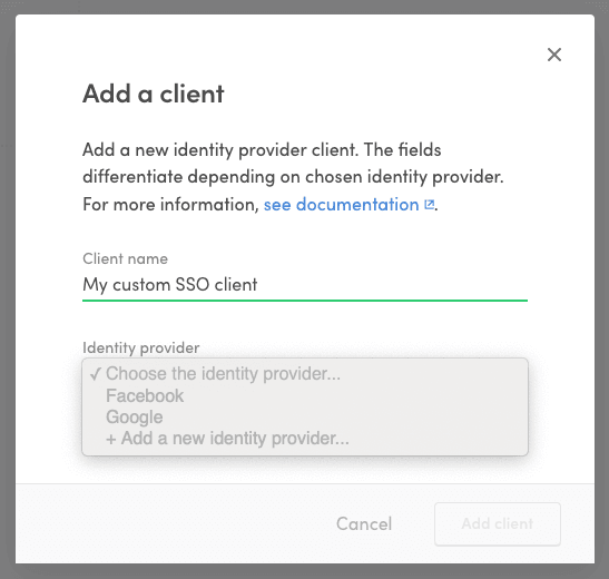 1. Click "Add client" to create the client and identity provider.